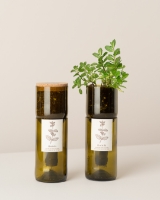 Prático: Uma garrafa reciclada recolhida em restaurantes, com um sistema de auto-rega, contém tudo o que necessita incluindo as instruções. Mesmo para iniciantes, o cultivo é fácil e acessível e a rega não é um problema.